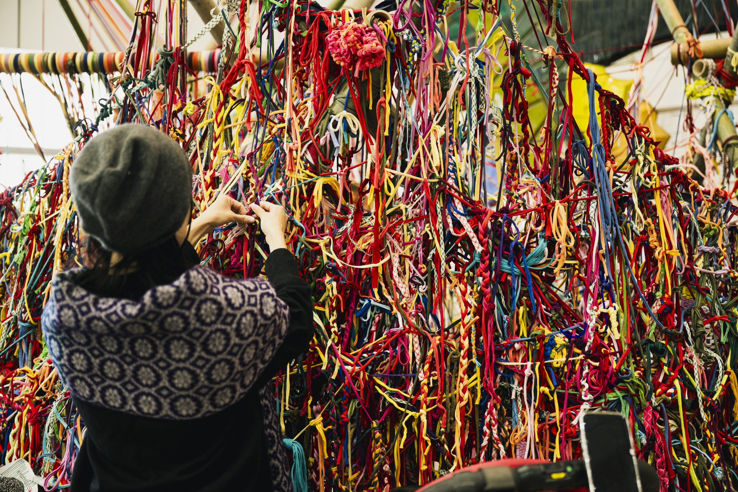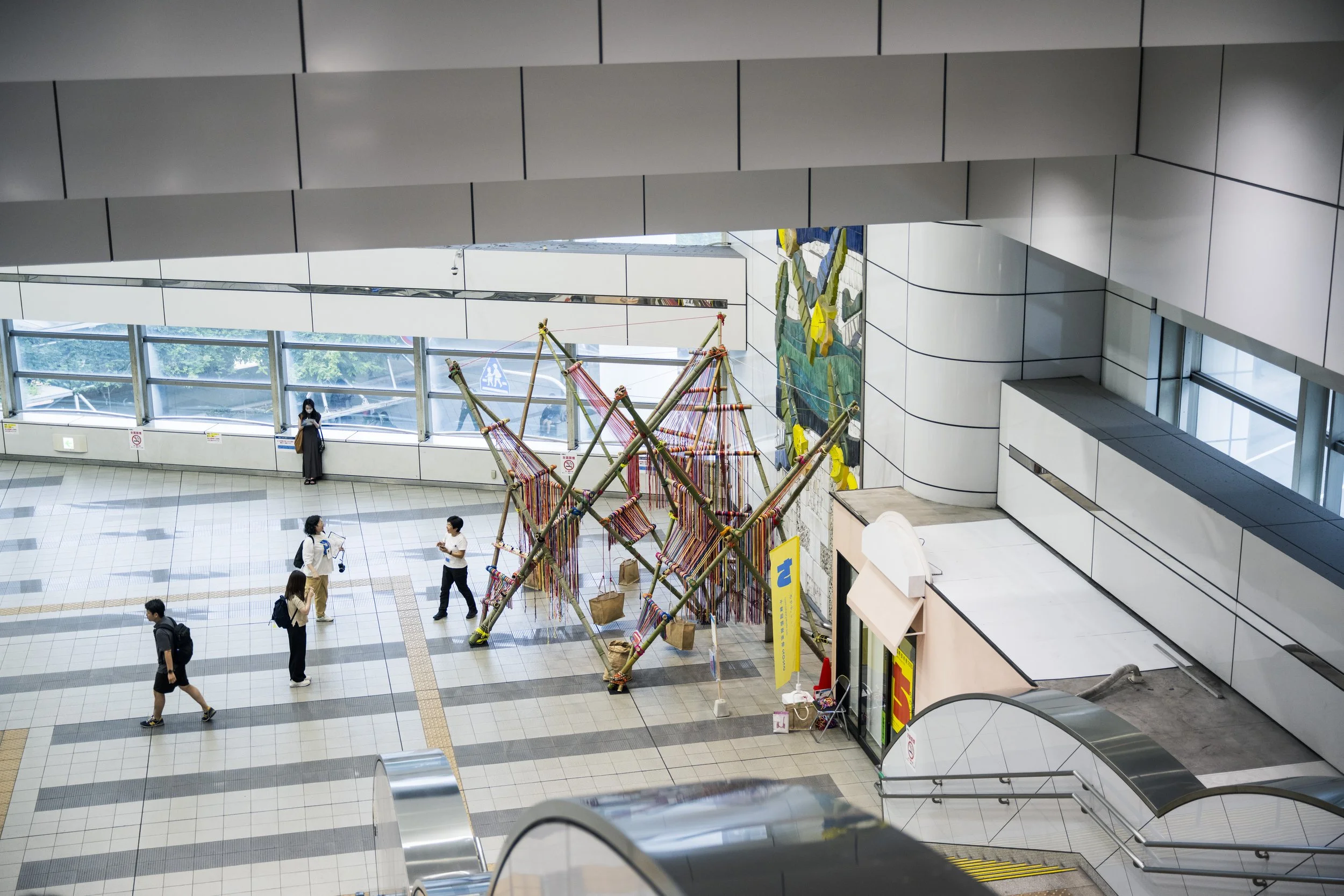 In Chiba, Slow Art Collective was invited to bridge two vastly different social realities through the act of weaving. we explored two radical extremes of public participation, weaving a connection between the city’s busiest hub and its most secluded rooms.